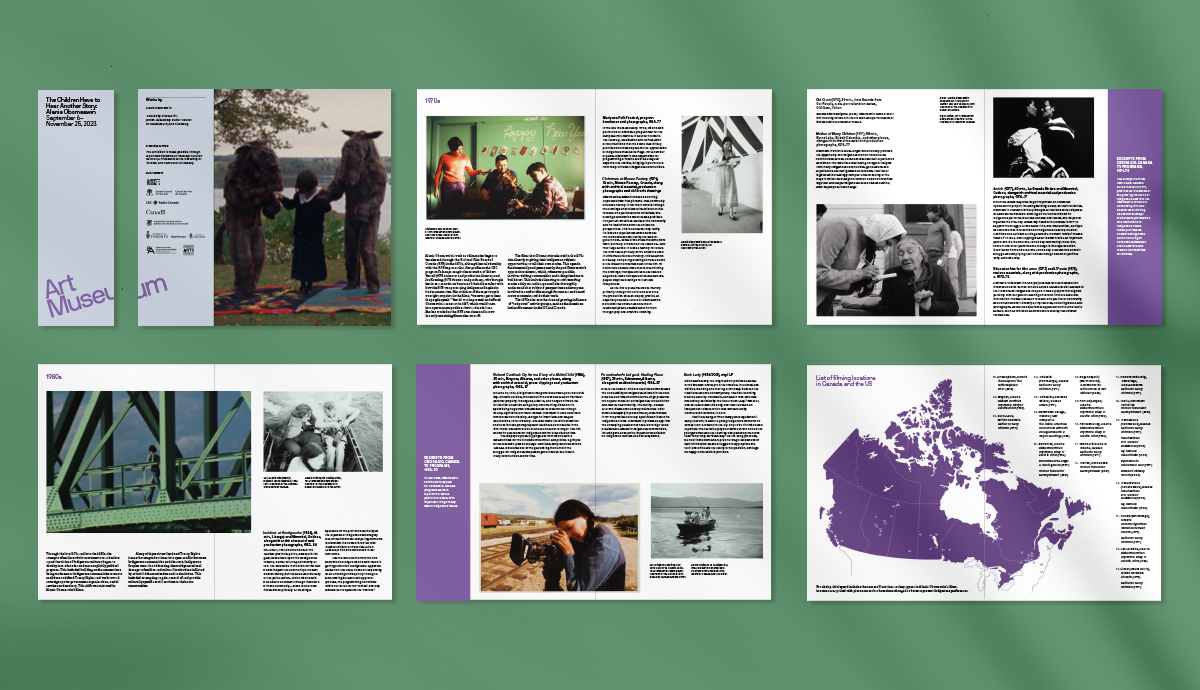 "The Children Have to Hear Another Story" exhibited at The Art Museum at the University of Toronto showcases the work of the Abenaki filmmaker, artist, and activist Alanis Obomsawin. I designed and laid out the exhibition brochure.
