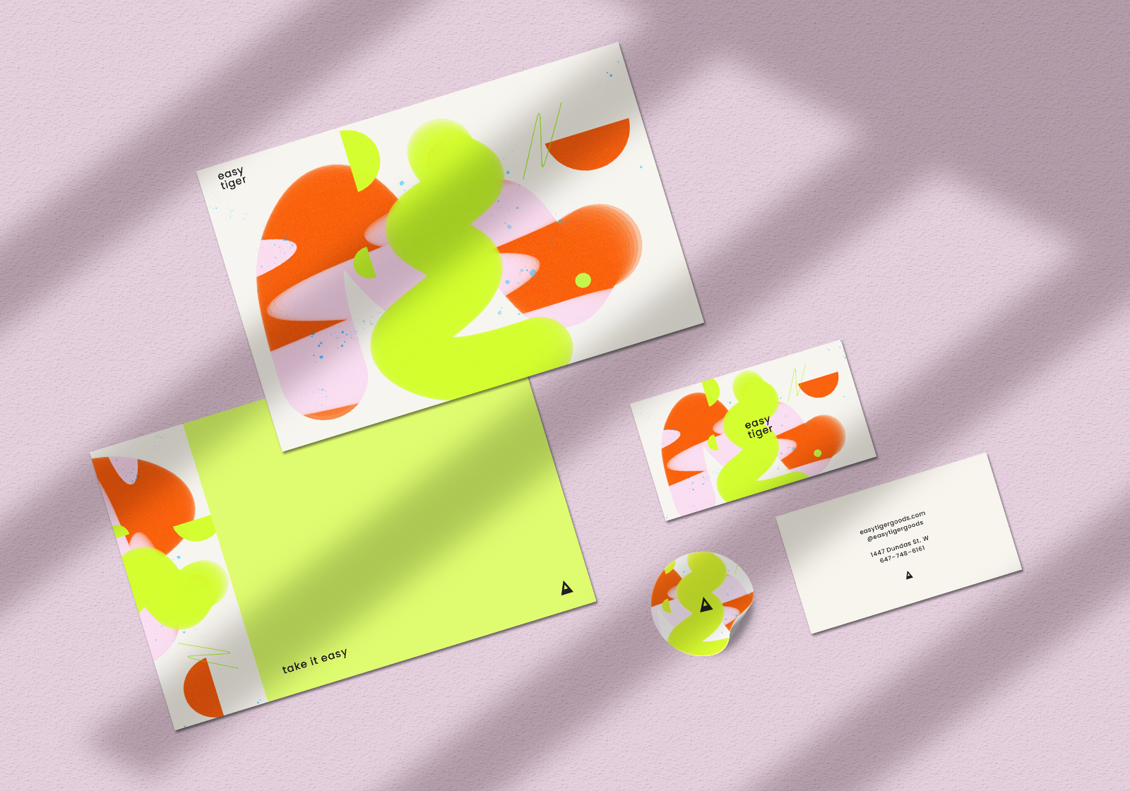 Designed a new business card, thank you card and stickers to reflect the fun, quirky and colourful ethos of design-focused Toronto boutique Easy Tiger Goods.