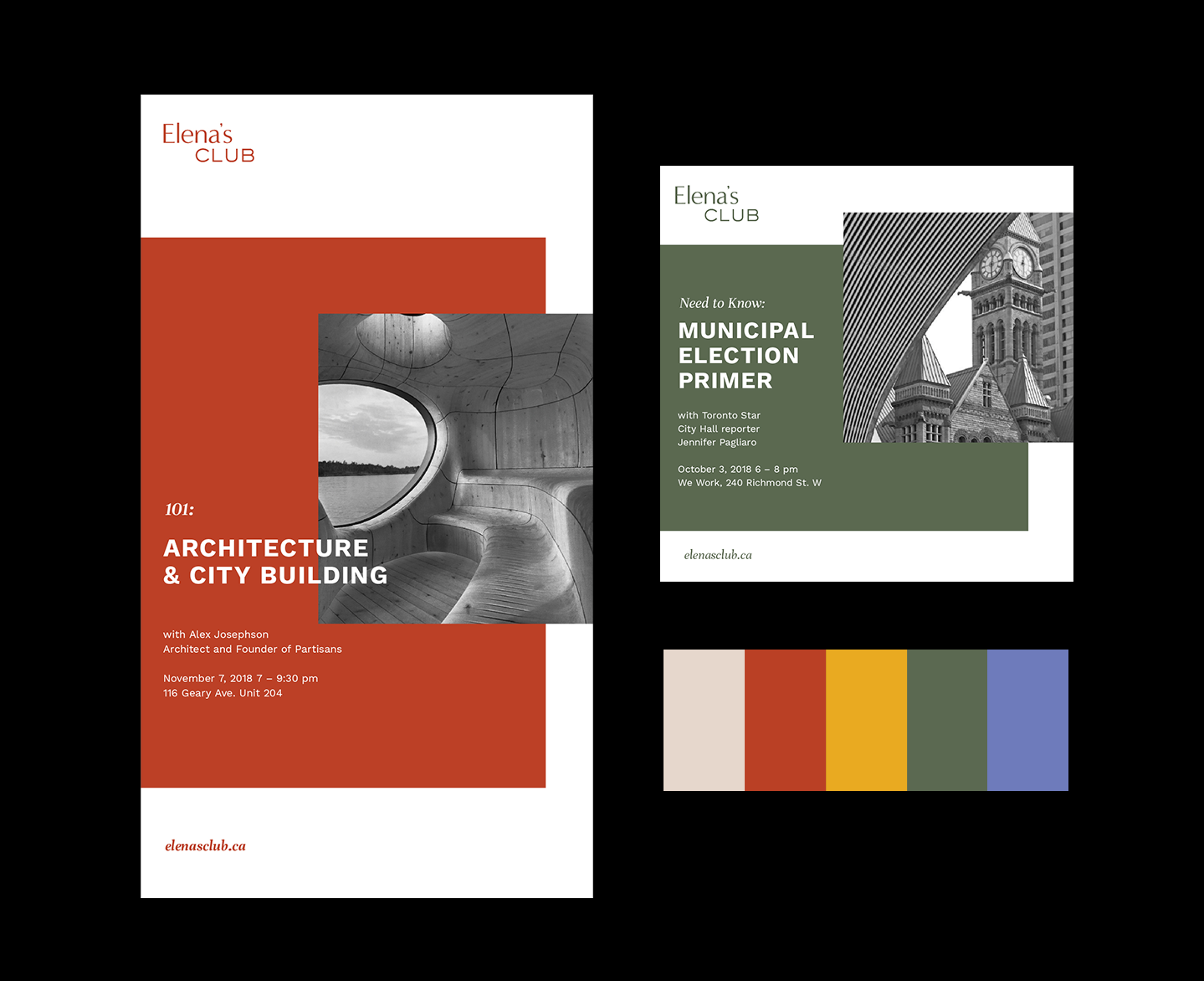 In an effort to better establish a visual identity for Elena's Club — an organization devoted to empowering women through education — I created a more refined logo, a template for graphics, and established brand fonts and a secondary colour palette.
