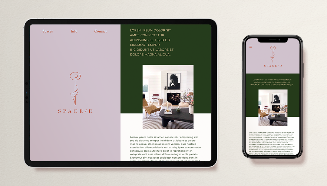 Designed brand identity and web mockups for spaces and experience company, SPACE'D.